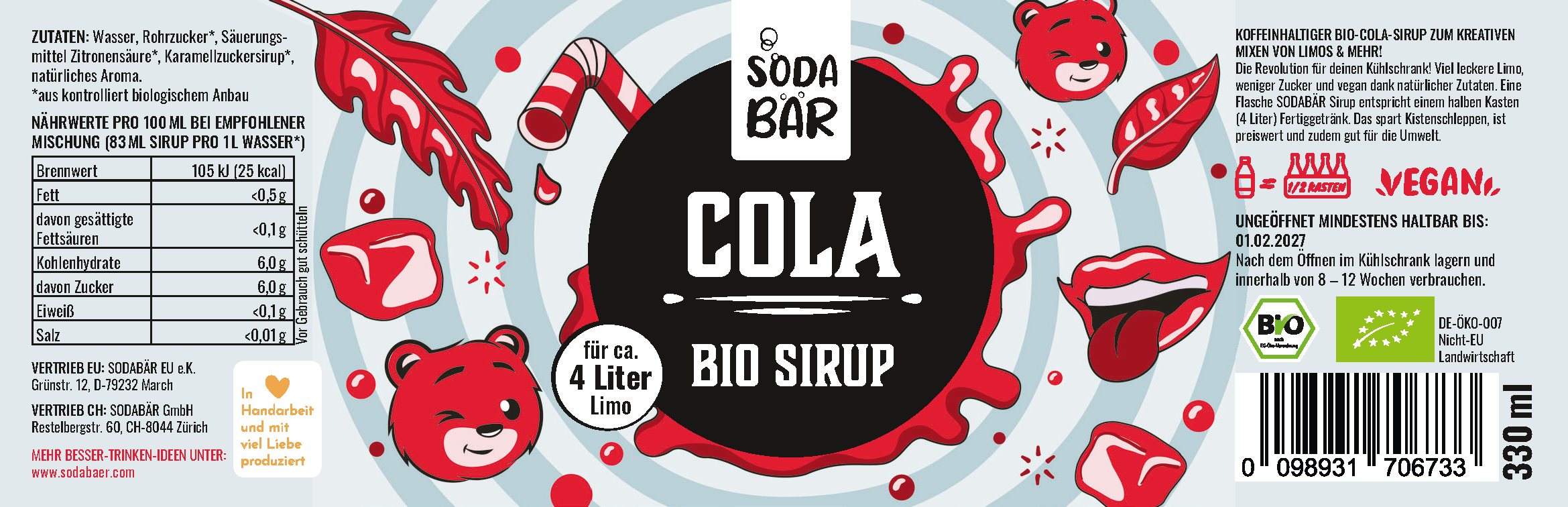 Verzehrempfehlung: 83 ml Sirup pro 1 Liter Wasser. Vor Gebrauch schütteln.