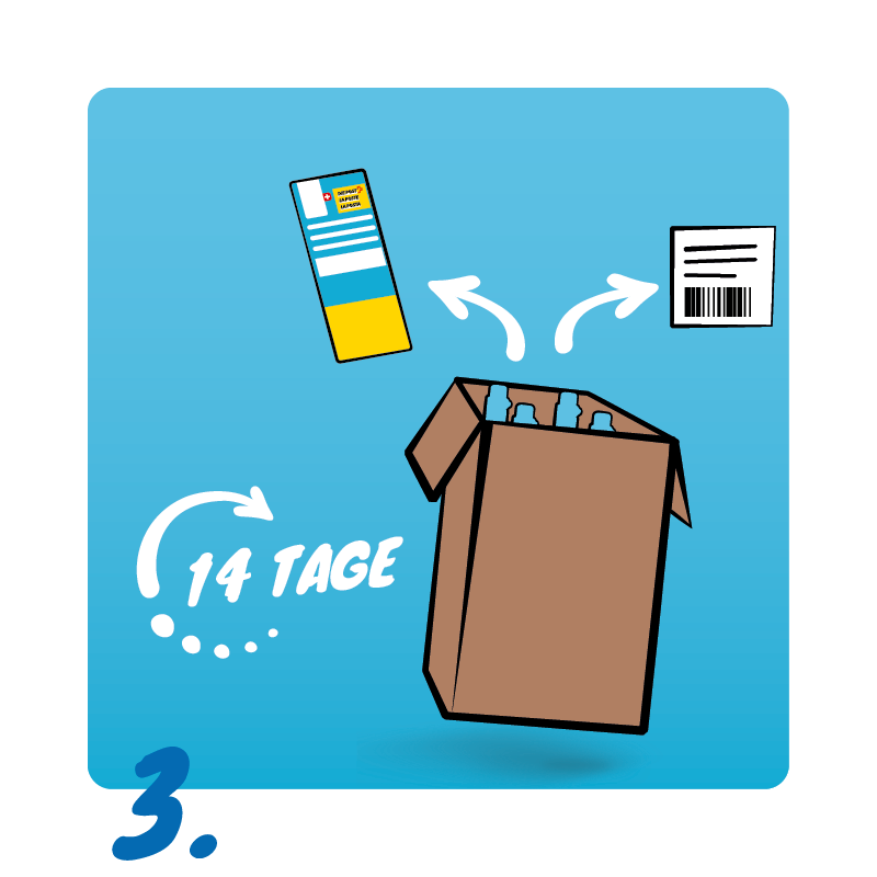 - Nach Erhalt schicken Sie Ihre leeren Zylinder in der selben Verpackung innerhalb von 14 Tagen per beigefügter Rücksendemarke zu uns zurück. Fertig :)